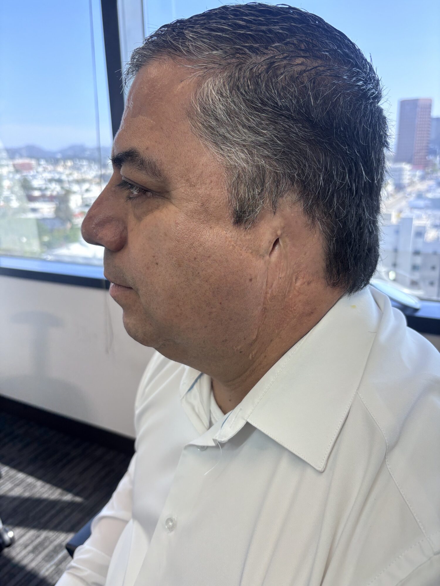In 2007, Jose was involved in a devastating workplace accident. A rack of sliding glass doors fell onto him, causing him to fall backward onto a metal table. His ear was completely severed, and despite best efforts, it could not be surgically reattached.